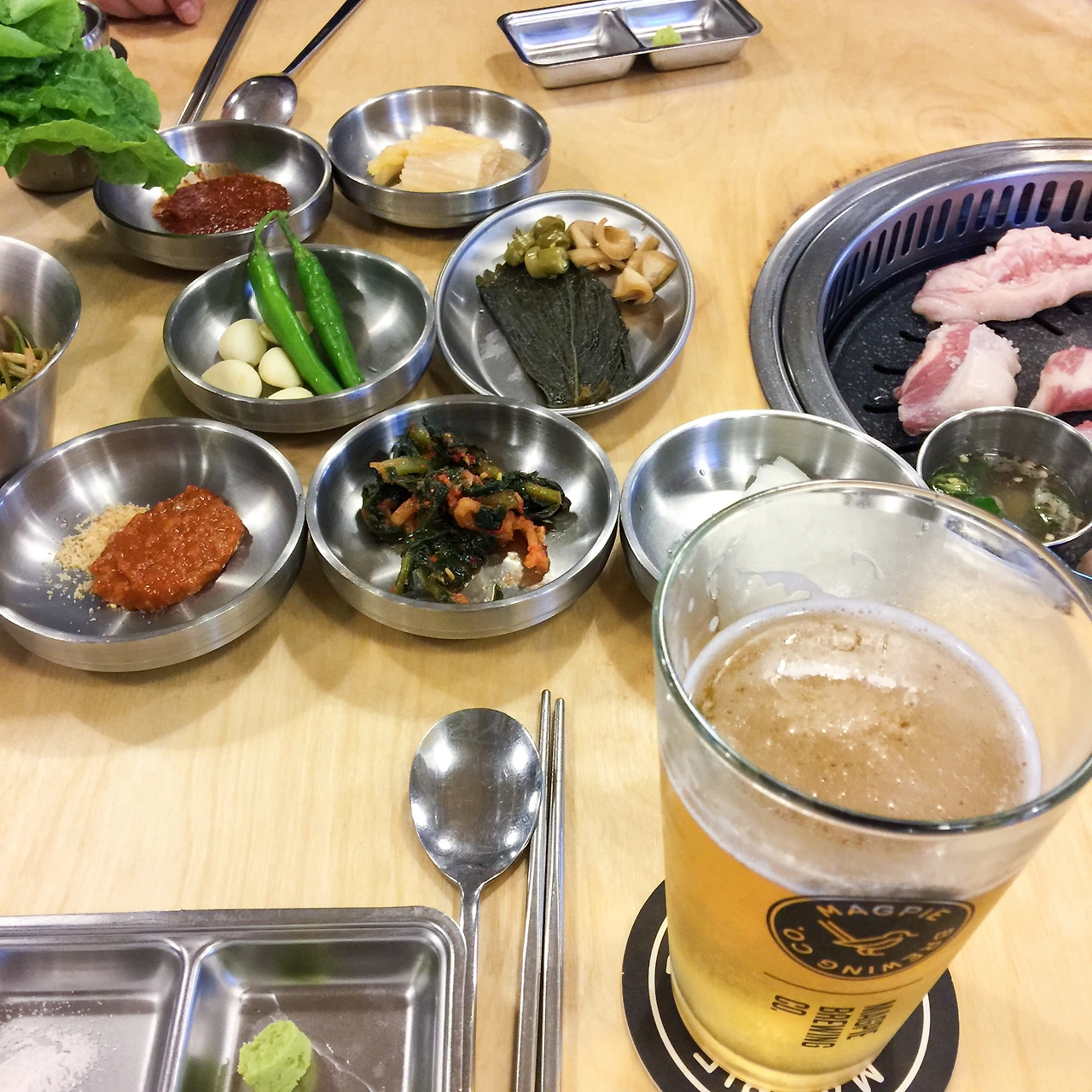 저녁 시간이 돼서 형님과 함께 찾은 곳은 제주 흑돼지 전문점인 곱들락(↗). 매번 '월정에는 맛있는 식당이 없어!'라고 하셔서 별로 기대 없이 방문했는데, 어라? 꽤 괜찮은 곳이었다. 딱 봐도 질이 좋아 보이는 고기. 가브리살이었나? 어쨌든 오겹살이나 목살은 아니었는데 주문했던 메뉴가 기억이 안 난다. 마무리로 주문한 찌개도 꽤 좋았다. 특이하게도 '고기'집인데 맥파이의 생맥주를 판매한다. 아! 여기가 제주인가? 하고 다시 한번 깨닫게 되는 순간.