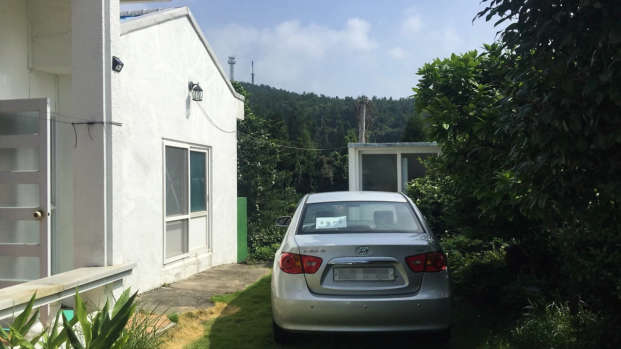 떠나기 전 2주 동안 정들었던 숙소를 기억하기 위해 여기저기 사진을 찍었다. 자동차 왼쪽으로 보이는 박공지붕의 건물이 내가 묵었던 별채. 그 앞에 서있는 아반떼가 이번 여행 내내 나와 함께해준 차. '초보운전'은 서울에 돌아올 때까지 떼지 않았다.