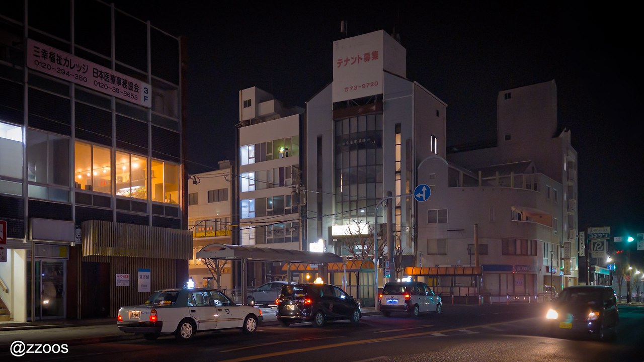 늦은 시간이 되면 택시들은 오테구치(大手口) 앞에서 대기하고 있습니다. 낮에는 버스들의 집결지이고 밤에는 택시들이 모이는 곳이죠. 사실상 가라쓰 교통의 중심은 가라쓰 역이 아니라 오테구치일지도 모릅니다.
