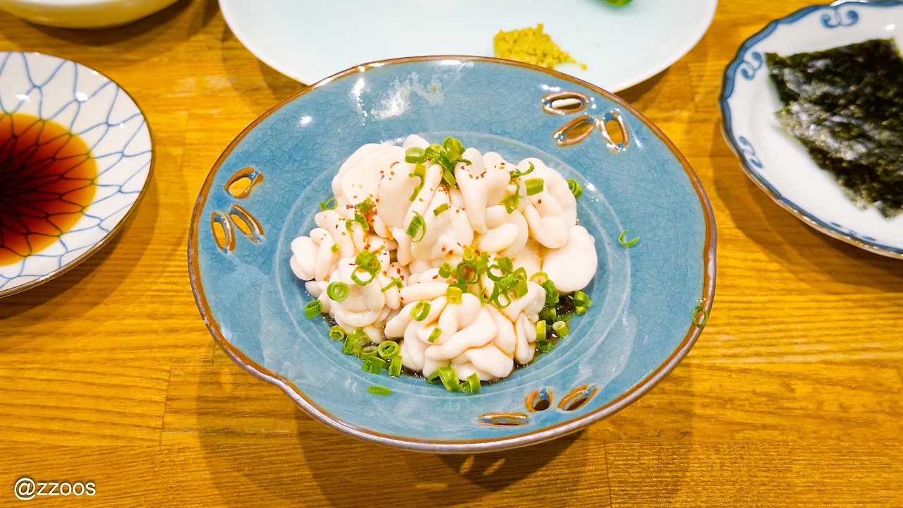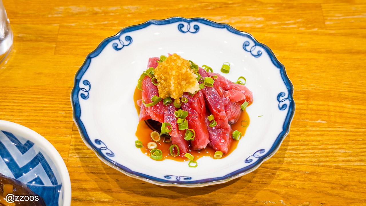 위에 생강을 잔뜩 갈아서 올려주셨길래 냄새가 좀 있는 부위인가? 하고 걱정했지만 잡내 하나 없이 완전히 깔끔하고 상쾌한 맛에 놀랐습니다. 간장에 살짝 절인 것이 신의 한 수라고 할까요. 양을 너무 적게 주셔서 아쉽다고 생각이 들 만큼 맛있었어요. 지방이 없으니 씹기에도 부드러웠고요.