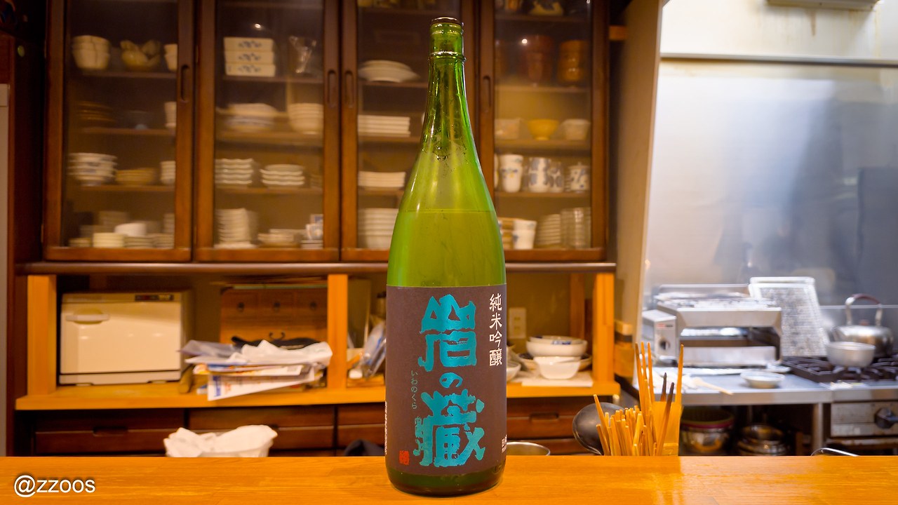 첫 번째로 추천받은 것은 이와노쿠라 준마이긴죠(岩の蔵 純米吟醸)입니다. 시치다(七田)로 유명한 텐잔주조(天山酒造)에서 한정적으로 유통시키는 니혼슈라고 하네요.