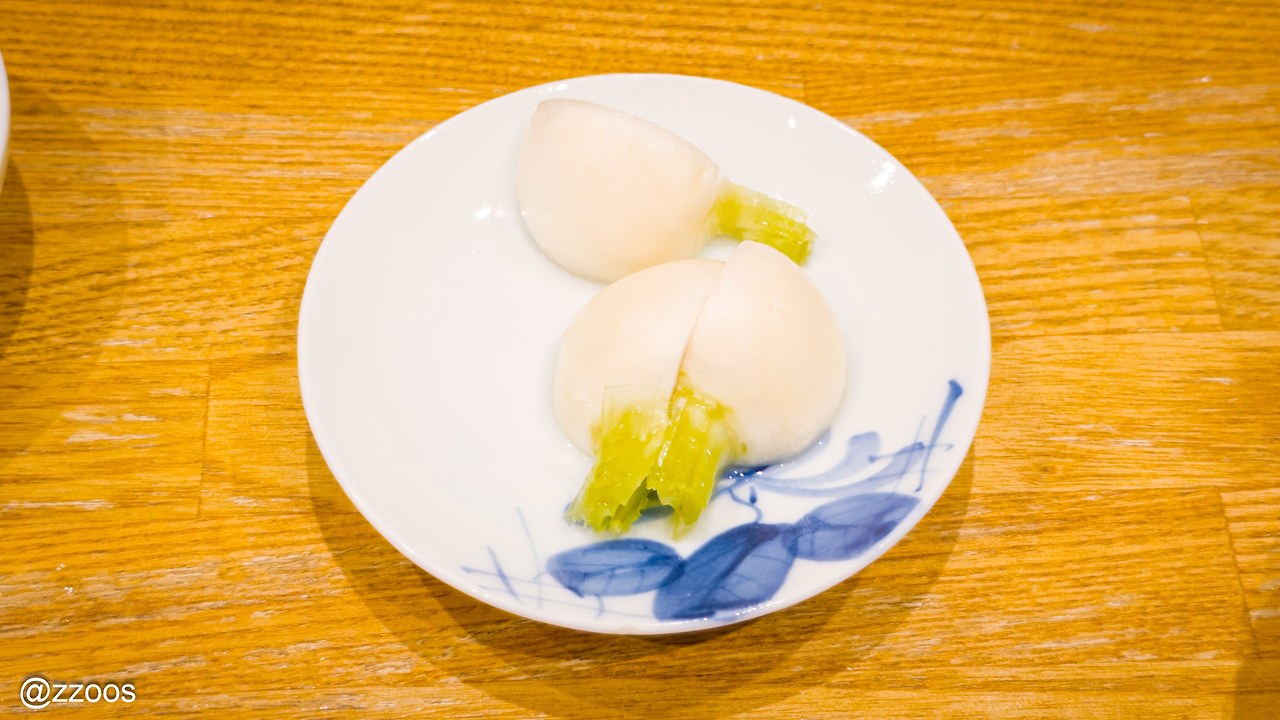 카부 아사즈케(かぶ浅漬け)를 한 접시 주셨습니다. 순무를 가볍게 절인 것이라고 하는데요. 니혼슈에 잘 어울린다면서 내주셨어요.