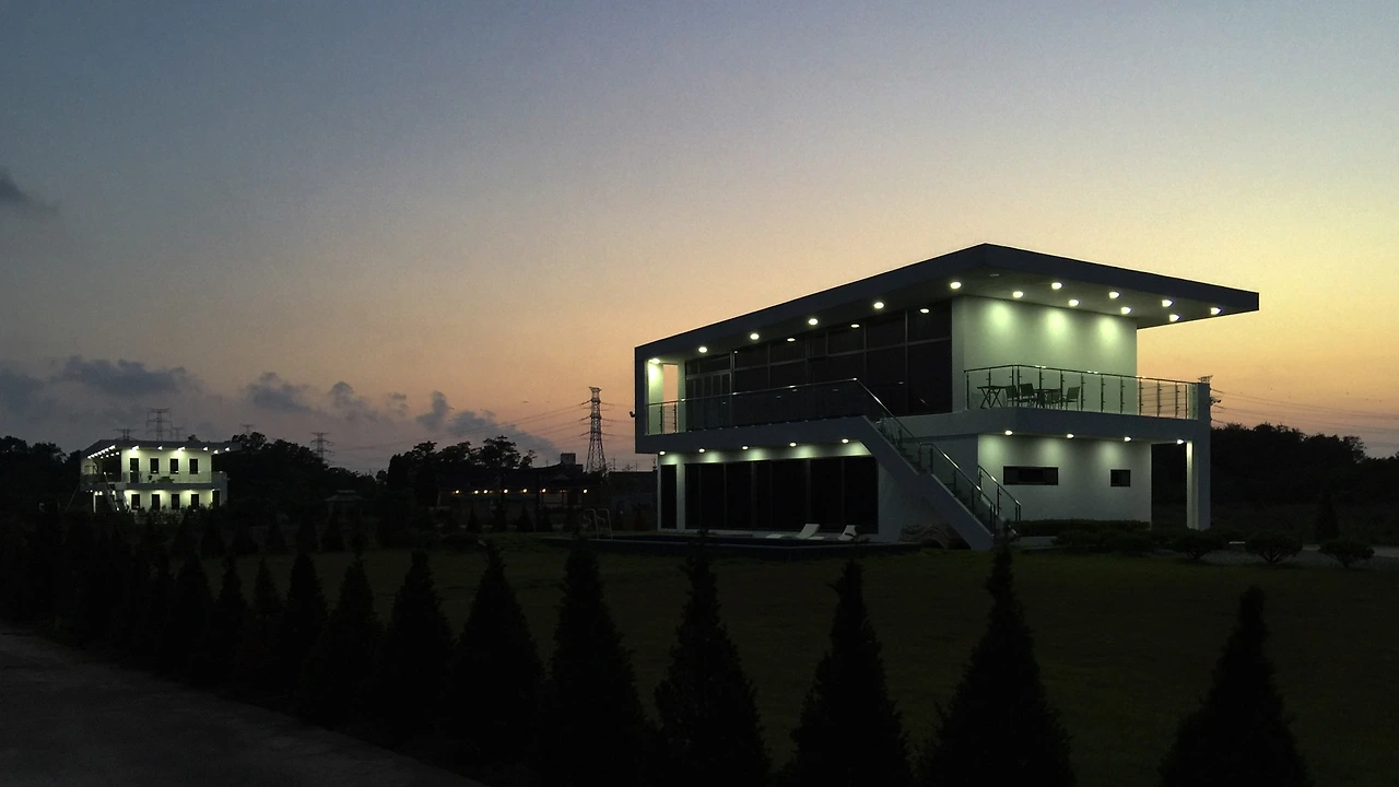 경치가 꽤 괜찮은 해변이라 그런지 펜션도 좀 있더라고요. 걷다 보니 사유지라고 표시된 곳이 나왔습니다. 원래는 들어가면 안 되는 것이지만... 사람도 아무도 없고, 잠깐 산책 정도는 괜찮지 않을까 싶어서 좀 더 걸어 들어가 보니, 리조트 같은 걸로 개발 중인가? 싶을 정도로 잘 정돈된 공간이 나옵니다. 공들여 지은 건물도 보이네요.