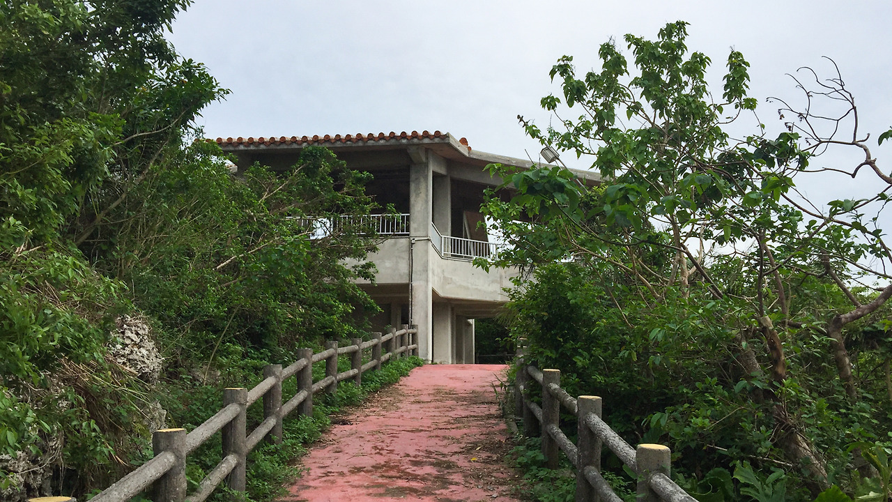 미야코 섬의 북쪽으로 달려 올라온 이유였던 해중공원(↗). 이제 본격적으로 그곳을 구경해보기로 했다. 일단 차를 세우고 꽤나 넓은 공원을 걸어 지나가야 했다. 사람들이 없어서 스산한 느낌이 들긴 했지만, 성수기에 오면 뜨거운 태양 아래에 관광객들이 득시글 거릴 것이 분명한 곳이었다.