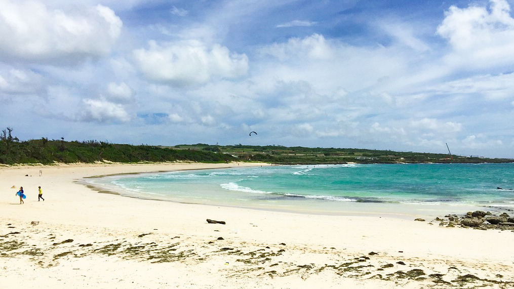 이곳은 해수욕으로 유명한 곳인듯했다. 구리마섬에서 구리마 대교를 건너서 좌회전하면 바로 보이는 해변이다. 멀리 운전하기가 싫었다. -0- 그리고 검색해보니 유명한 곳이기도 했고, 전망대에서 바라본 아름다운 바다 건너편에 있는 해변이라는 것도 선택의 이유. 지도를 보면 알겠지만 류구조 전망대에서 미야코섬 쪽으로 바다를 건너면 바로 이곳이다(사진을 잘 보면 전망대가 찍혀 있을 수도...).