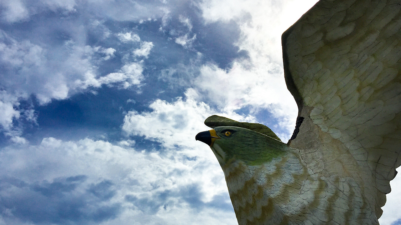 주차장에 차를 세우면 바로 앞에 날개를 펼치고 있는 커다란 매(?)가 보이는데, 꼬리 쪽에 계단이 있어서 올라가 볼 수 있다. 툭 튀어나와있는 높은 지형이라 멀리 떠나가는 배를 배웅하기에 좋았던 곳이었겠다는 생각이 든다. 헌데 '배웅'과 '매'는 어떤 연관이 있는 걸까? 용맹한 새(또는 새의 신)가 떠나는 가족을 보호해주길 바란 걸까?