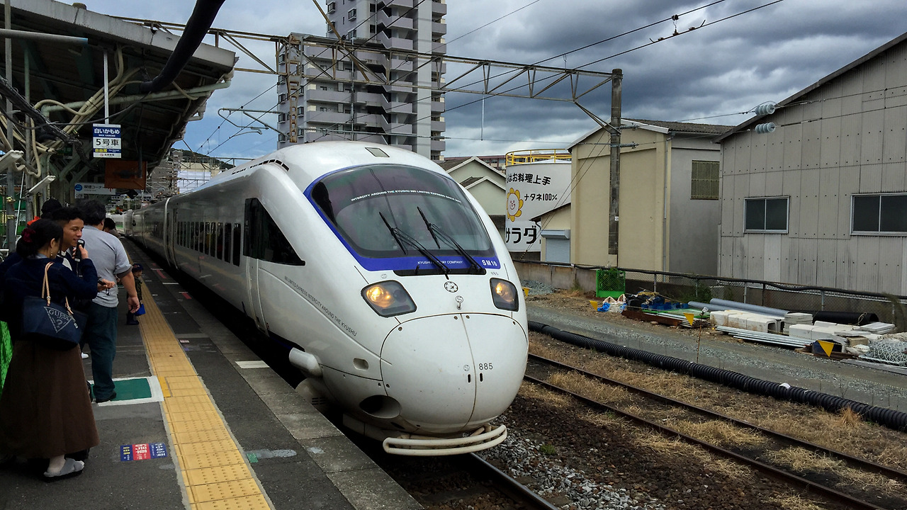 한 시간 조금 더 걸려 이사하야(諫早) 역에 도착했다. JR 노선을 타는 플랫폼을 이동해 다음에 타야 할 기차인 시로이 카모메를 기다렸다. 특급 열차인 시로이 카모메는 꽤 귀엽게 생긴 열차다. 후쿠오카의 하카타(博多) 역과 나가사키(長崎) 역 사이를 운행하기 때문에 예전에 나가사키 여행을 할 때 타봤던 열차라서 왠지 모르게 반갑다는 생각도 들었다.