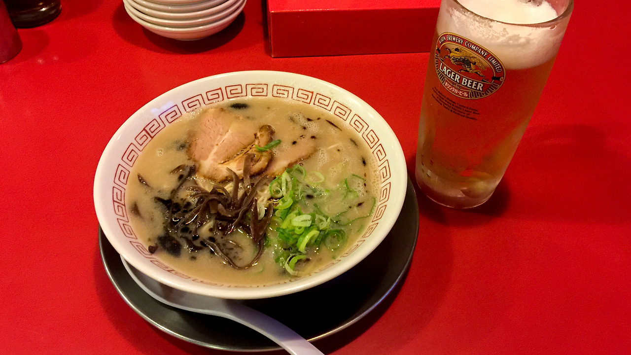 CHARIMING 에서 신나게 웃고 떠들며 마시다 보니 새벽에 라면이 먹고 싶어 졌다. 근처에 뭐가 있나 검색을 해보니 라멘 아카구미(ラーメン 赤組)라는 가게를 발견. 구마모토 라멘은 돈코츠 베이스에 닭 육수를 조금 넣는 것이라는데 베이스가 돈코츠라서 그런지 꽤나 마음에 드는 맛이었다.