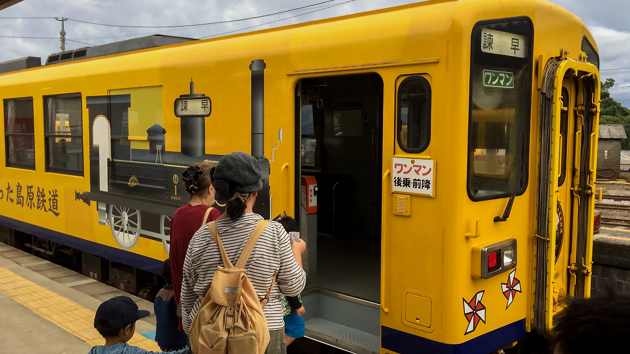 미나미시마바라(南島原) 역(현재는 시마바라후타츠 島原船津 역으로 이름이 바뀌었다)에 도착해 열차표를 사려고 하니 역무원이 뭔가 다른 걸 사라고 설명을 해준다. 제대로 알아듣진 못했지만 '싸다'는 말을 알아듣고는 그렇게 해달라고 했더니, 일요일에만 판매하는 '시마테츠 프리 패스'이라는 게 있는 거였다. 시마바라선을 운영하는 시마테츠라는 회사에 소속된 열차와 버스를 하루 종일 1000엔으로 탈 수 있는 패스. 나는 어차피 편도로 이사하야까지만 가면 되니까 패스가 무슨 소용일까 싶지만, 어쨌든 내가 가야 하는 구간 요금보다 패스가 더 쌌다! 2~300엔 정도를 아꼈다는 생각에 기쁜 마음으로 열차를 기다렸다.