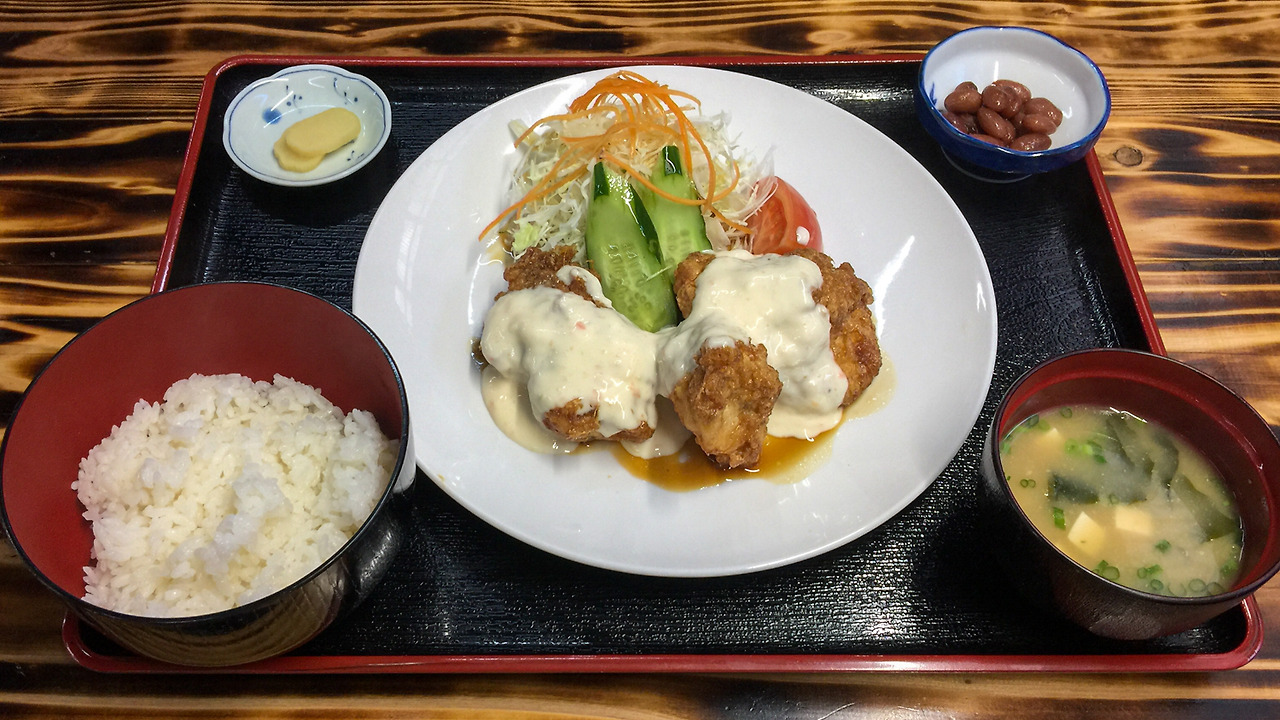 타카치호는 미야자키현(宮崎県)이니까 미야자키의 특산물인 토종닭고기를 먹고 싶었는데, 마침 치킨남방이 메뉴에 보이길래 바로 주문. 토종닭인지는 알 수 없었지만 정말 맛있는 닭이었다. 그 쫄깃한 육질로 미루어 봤을 때 아마도 토종닭이 아니었을까?