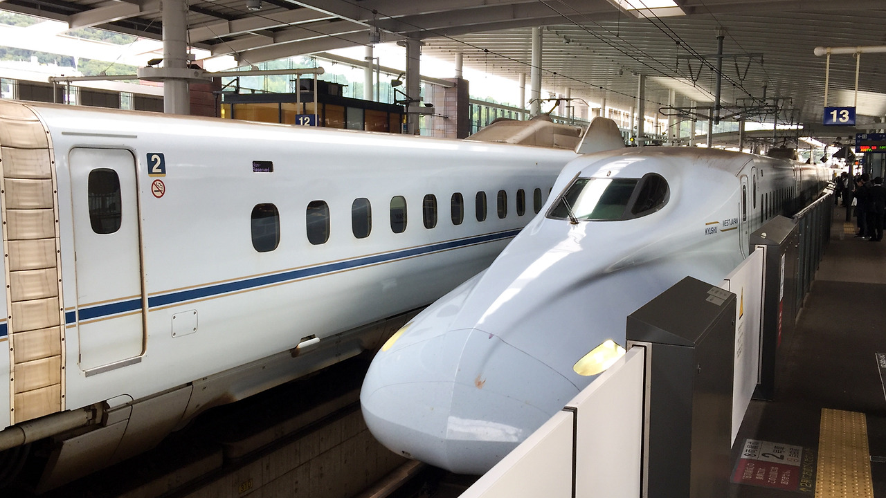 구마모토 역에서 신칸센을 타고 약 한 시간 정도 남쪽으로 내려가면 가고시마추오 역(鹿児島中央駅)에 내릴 수 있다. 가고시마에는 가고시마 역(鹿児島駅)도 있지만 신칸센을 타고 내릴 수 있는 역은 가고시마추오 역이다. 경주에도 경주 역이 있지만 KTX가 다니는 역은 신경주역인 것과 비슷한 상황.