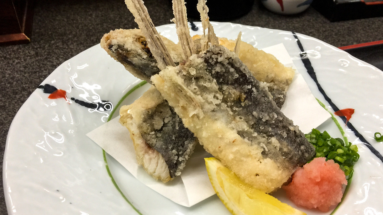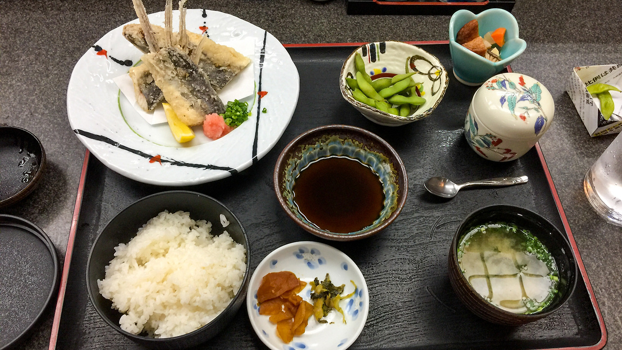 쿠비오레사바 정식을 주문했는데, 오늘은 안 된단다. ㅠㅜ 그래서 어쩔 수 없이 야쿠시마의 두 번째 명물인 날치 튀김 정식을 주문했다. 사세보에서 이미 날치 라멘을 먹어본 터라서 날치라는 생선을 먹는 것에 대한 거부감은 전혀 없었다.
