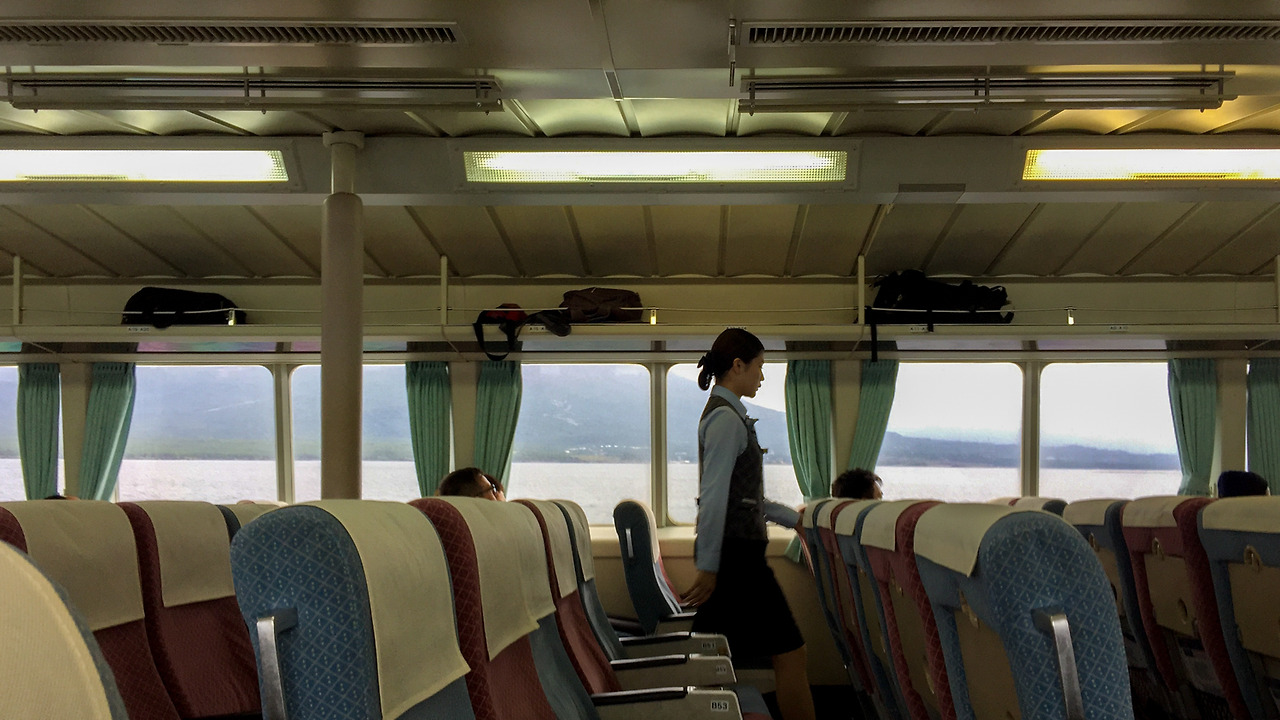 일본에서 배를 타는 것은 처음이 아니지만, 배를 타고 이렇게 장거리 이동을 하는 것은 처음이었다. 가고시마 항구에서 야쿠시마의 미야노우라 항(宮之浦港)까지는 약 140Km. 두 시간 채 걸리지 않아 도착하는 걸 생각해보면 배의 속도는 대략 시속 6~70km 정도 되나 보다.