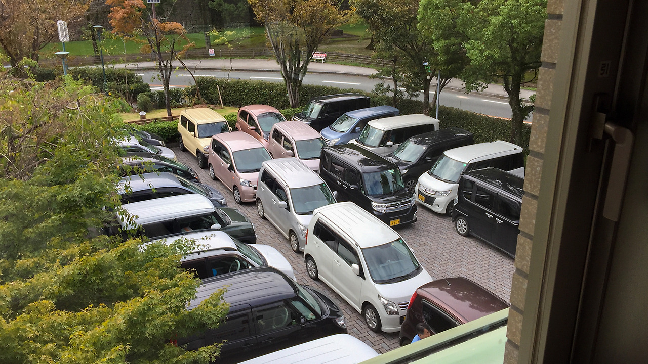 짐을 모두 챙겨 체크아웃을 하려는데, 주차장에 빼곡히 들어찬 차를 보게 됐다. 2층에 있는 홀에서 뭔가 행사가 있는 것 같았고, 행사에 참여하기 위한 사람들의 차량이었던 것 같은데, 주차한 모습이 마치 퍼즐을 맞추듯 잘 정렬된 게 신기한 풍경이라서 한 컷.