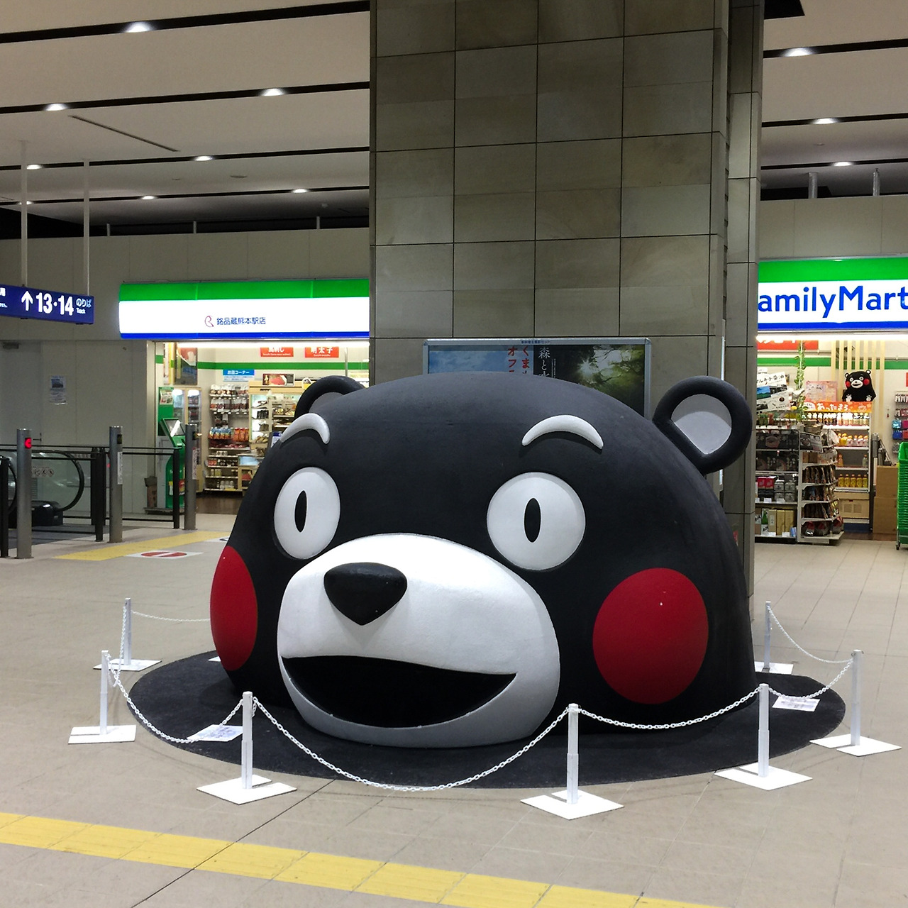 기차를 타기 위해 구마모토 역(熊本駅)으로 가보니 1층에 거대 쿠마몬이 보인다. 구마모토의 앞글자인 쿠마(熊)가 곰이라는 뜻이라는 것에서 착안해 만든 구마모토 현의 캐릭터. 한때 일본에서 가장 인기 있는 캐릭터 중의 하나였고, 지금도 유명한 캐릭터다.