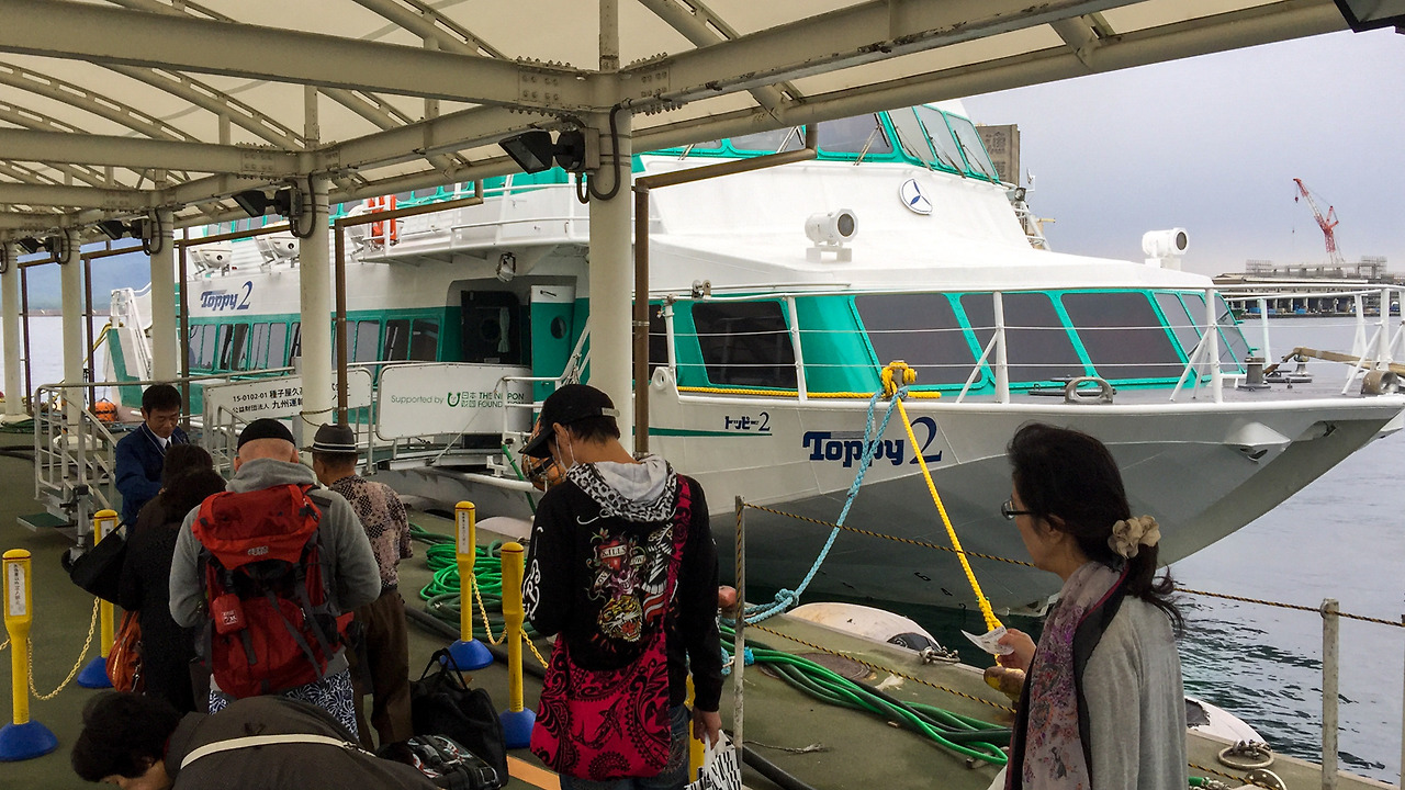 아침에 잠깐 파란 하늘을 보여주던 하늘은 가고시마에 도착하니 잔뜩 흐려있고 드디어 비까지 뿌리기 시작했다. 어젯밤에 너무 힘차게 달린 여파로 몸이 말이 아니었기도 해서 택시를 타고 가고시마 항으로 가달라고 했다. 어디로 가는 거냐고 물어보시길래 야쿠시마로 들어가는 배를 타야 한다고 말씀드렸더니 토피&로켓 승강장(トッピー&ロケット乗り場 )에 내려주셨다.