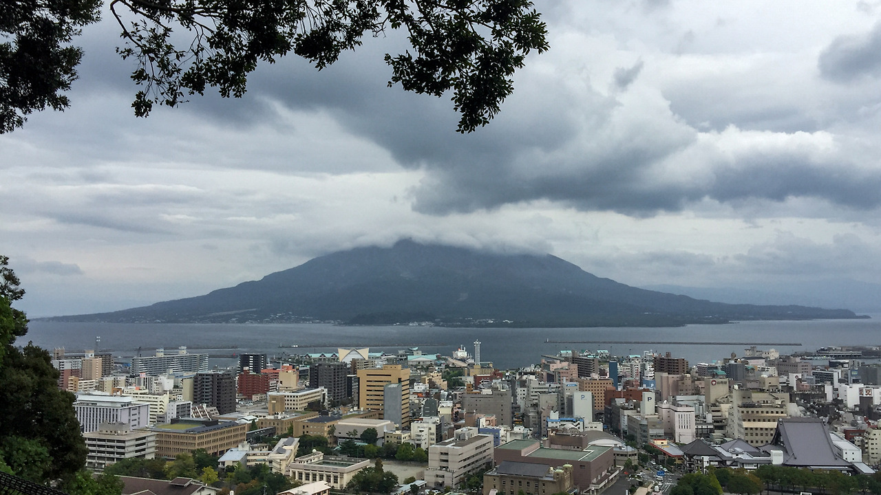 근대 문학관 뒷길로 올라와서 산길을 따라 걸으니 삼십 분 정도 걸려서 시로야마공원 전망대(城山公園展望台)에 도착했다. 드디어 사쿠라지마(桜島)를 제대로 볼 수 있는 건가? 기대를 가지고 발걸음을 옮겼는데, 태풍이 오고 있기 때문인지 하늘에 구름이 많았고, 그 구름은 사쿠라지마의 꼭대기를 가리고 있었다.