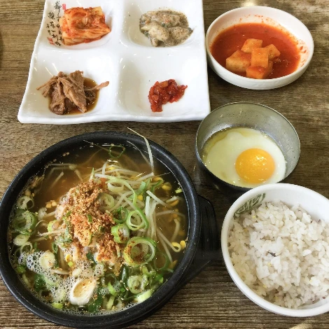 하루 종일 아무것도 안 먹었더니 배가 고파지긴 하더라고요. 좋은 침대에 늘어져 있어서 그랬는지 컨디션도 좀 돌아왔고요. 따끈한 국물과 함께 밥을 먹고 싶었습니다. 숙소 근처에 예림옥(↗)이라는 식당이 있는데 평점이 좋더군요. 콩나물국밥을 먹었는데, 아주 맛있게 먹고 드/디/어 해장이 되는 느낌이었습니다.