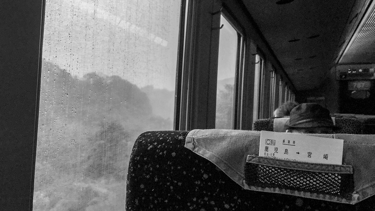열차 내부는 넓고 쾌적한 편이었다. 가고시마 시내를 벗어나서 조금 더 달리자 오른편에 가고시마만(鹿児島湾)이 나타났다. 맑은 날이라면 멋진 경치를 보여줬을 텐데 태풍 때문인지 바다가 온통 흙빛이다. 어느새 이런 풍경이 익숙하다. 지난 21호 태풍 란 덕분에 시마바라(島原)에서 구마모토(熊本)까지 배를 타지 못하고 기차를 탔을 때, 아리아케해(有明海)의 파도도 저런 흙빛이었다. 한 번의 여행에 두 개의 태풍이라니. 일본에 태풍이 잦은 건지, 내가 운이 안 좋은 건지 모르겠다.