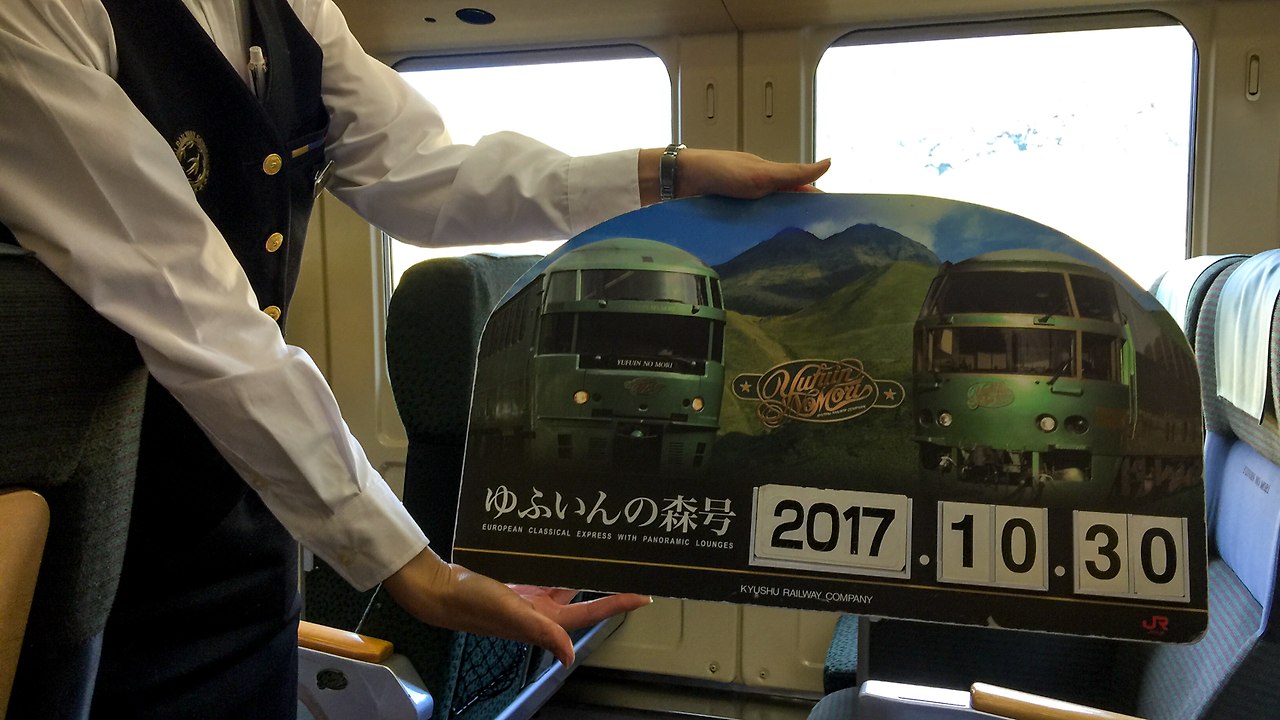 중간에 승무원이 날짜판(?)을 들고 와서는 기념사진을 찍어주겠다고 한다. 저 판을 들고 기념사진을 찍는 거다. 아, 별로 그러고 싶은 생각은 없어서 괜찮다고 대답했더니 웃으면서 뒷자리 쪽으로 지나가는데, 갑자기 이런 생각이 들었다. 굳이 내가 들고 찍을 필요는 없지만, 오늘이 내 생일이라는 흔적은 남겨두자. 그래서 그녀의 뒤통수에 대고 다시 잠깐만요! 를 외쳤다. 그냥 그 판만 찍겠다는 손짓을 하고 날짜를 찍었다. 2017년 10월 30일. 그래, 2017년의 생일에, 나는 유후인으로 가는 기차를 타고 있었구나.
