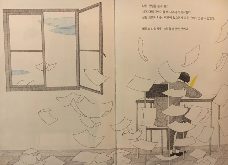 어른이 되어도 딴생각하는 습관은 좀처럼 없어지지 않아서 시도 때도 없이 새가 되어 여기 저기를 누볐던 주인공이, 새가 되지 않아도 이곳저곳을 누빌 수 있는 법을 발견하였다. 그것은 바로 소설을 쓰는 것.