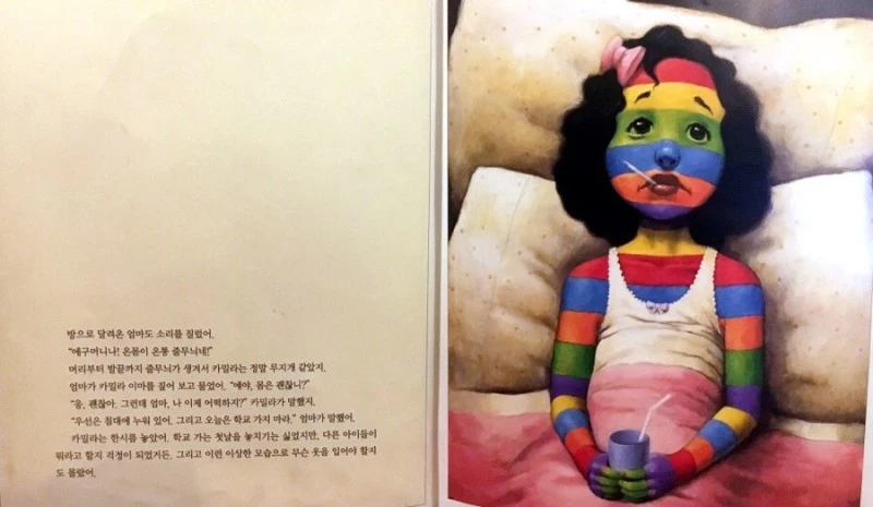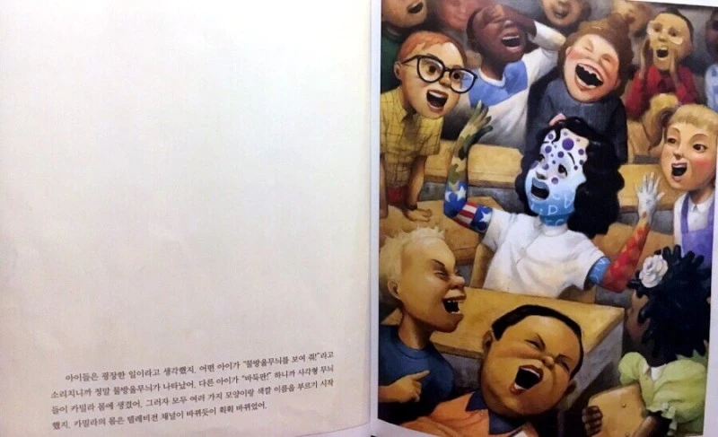 모든 아이들의 취향을 너무너무 만족시키고 싶어서였는지, 자고 일어났더니 카밀라의 몸은 형형색색의 줄무늬가 생겨있었고 설상가상으로 카밀라의 몸에 친구들이 이야기하는 모양들이 시시각각 나타나기까지 한다. 대체 이게 뭔 일이지?!