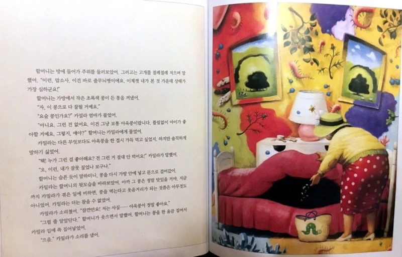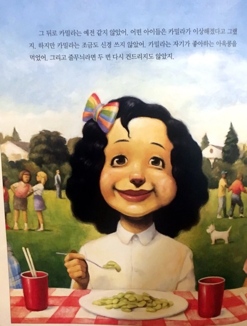 본래 모습을 되찾는 것은 어려운 일이 아니었다. 그저 좋아하는 일을 하고, 좋아하는 것을 먹고, 내가 좋아하는 상태로 살면 되는 것이었다. 아주 끔찍한 경험을 한 카밀라는, 더 이상 다른 사람의 시선 따위는 신경 쓰지 않고 누가 이상하게 보든 말든 자신이 좋아하는 아욱콩을 맛있게 먹게 되었다. 웃는 모습이 참 보기 좋다.