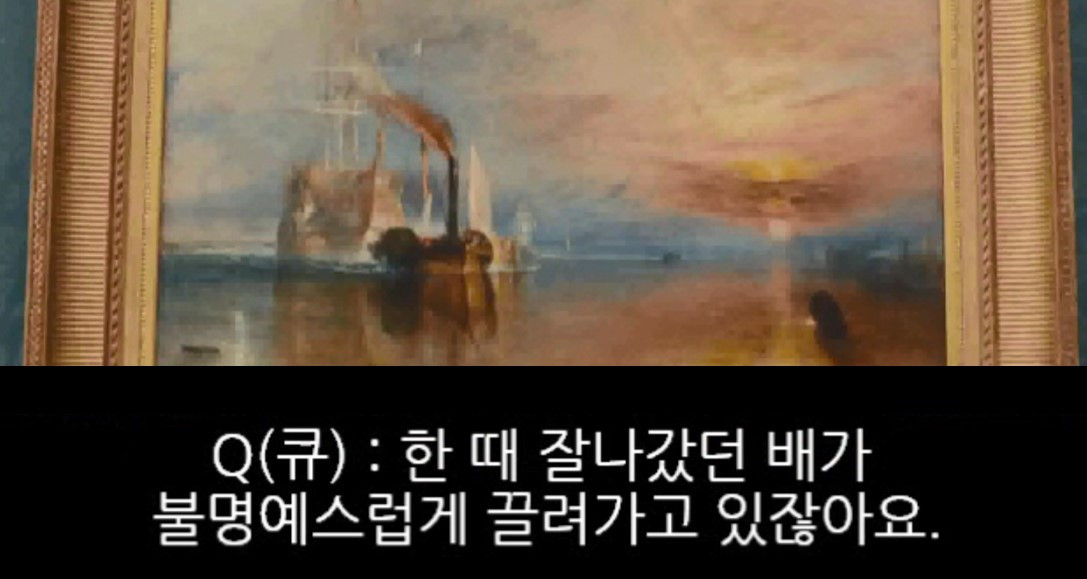 제목에서 보시는 것처럼, 1838년 어느 날, 전함 테메레르는 해체를 위해 마지막 정박지로 예인 되고 있었고
