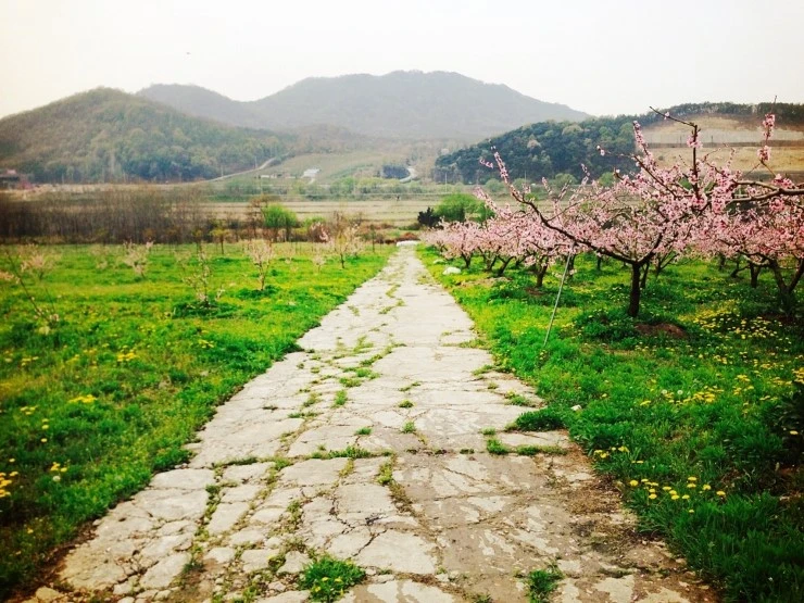 복숭아꽃이 흐드러지게 피어있던 복숭아나무밭을 걸은 적이 있습니다.