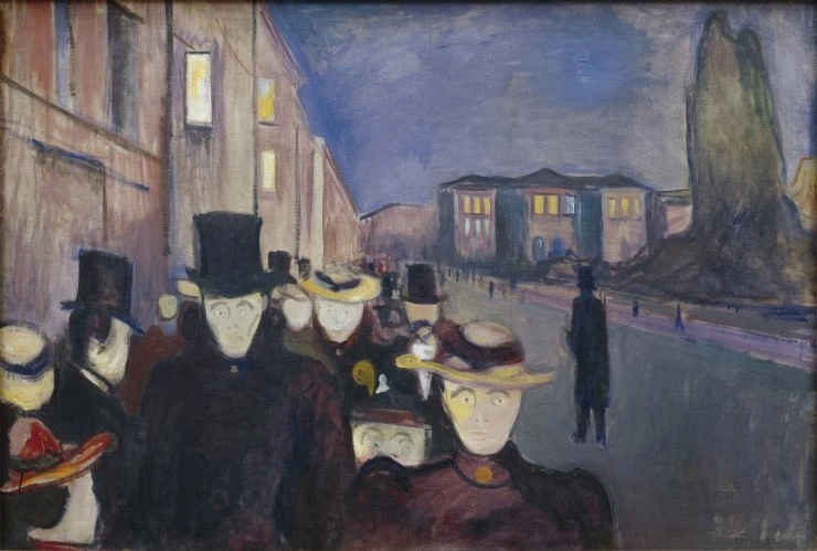 친구 두 명과 함께 길을 걷고 있었는데 거리와 피오르드가 내려다보이는 언덕 쪽으로 태양이 지고 있었습니다. 바로 그 순간 갑자기 나는 너무 슬펐습니다. 하늘이 돌연 피처럼 붉게 물들었습니다. 나는 마음이 너무나 초조 해저서 그 자리에 멈추어 서고 난간에 기대었으며 칼에서 뚝뚝 떨어지는 피처럼 검푸른 피오르드와 거리 위로 낮게 깔린 불타는 듯한 구름들을 바라보았습니다.