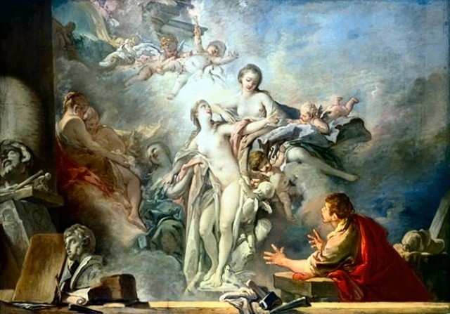 조각이 실제 여인으로 변하는 순간, 사랑의 상징인 큐피드가 그림에 자주 등장합니다.
