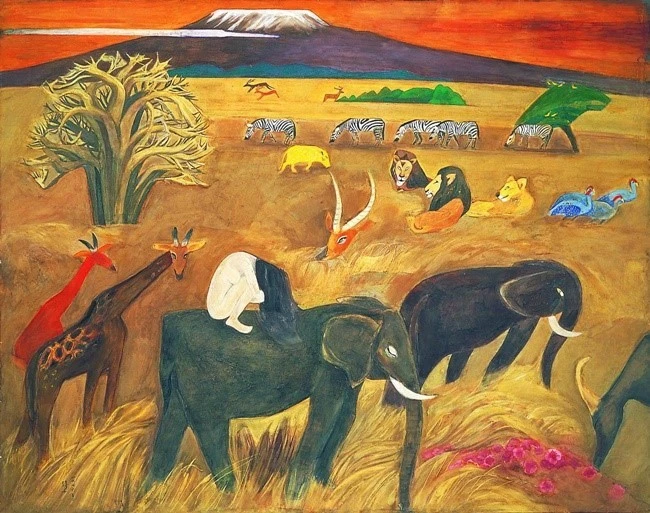 얼핏 보면 아프리카 정글을 그린 이국적인 풍경화이지만, 자세히 들여다보면 나체의 몸으로 웅크려 울고 있는 자신을 그린 그녀의 자화상입니다.