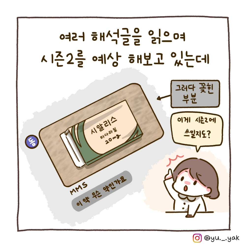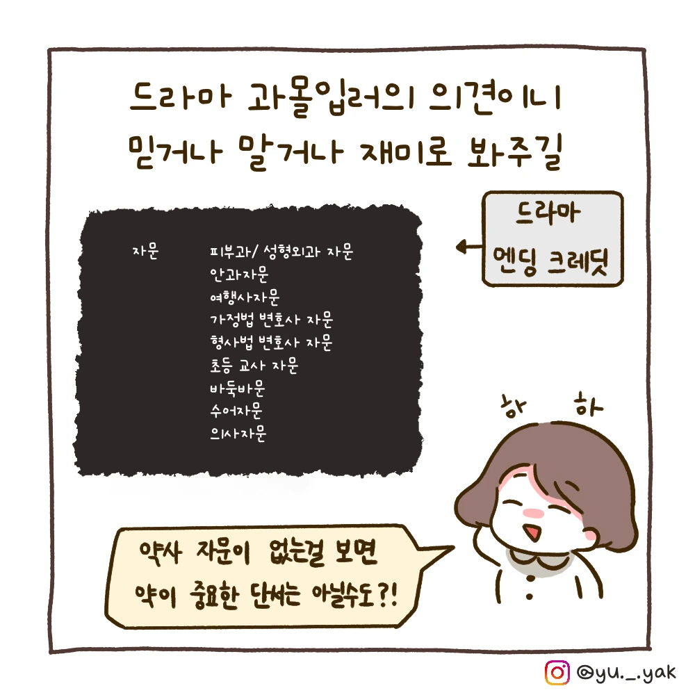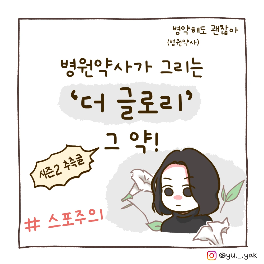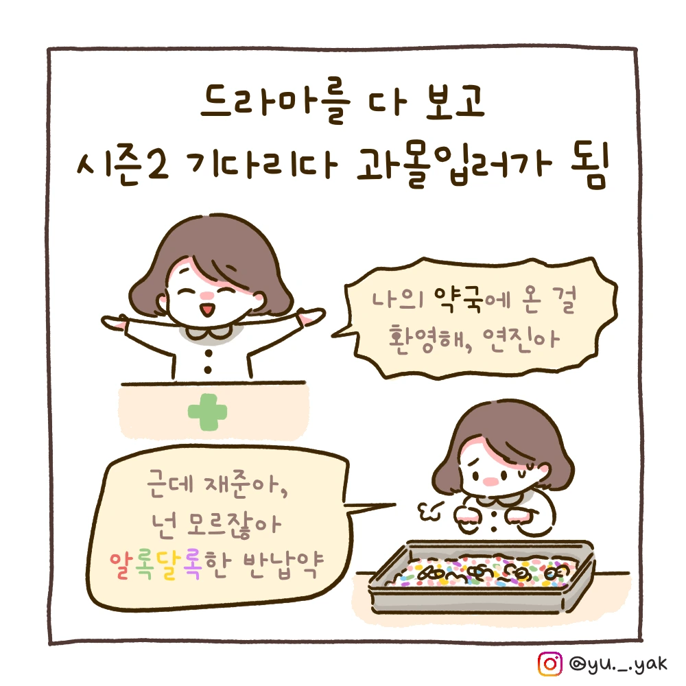 병원약사로 근무하고 있는 유약입니다. 병원약사 일상을 공유하려고 합니다. 인스타그램 [병약해도 괜찮아] 연재중 @yu._.yak