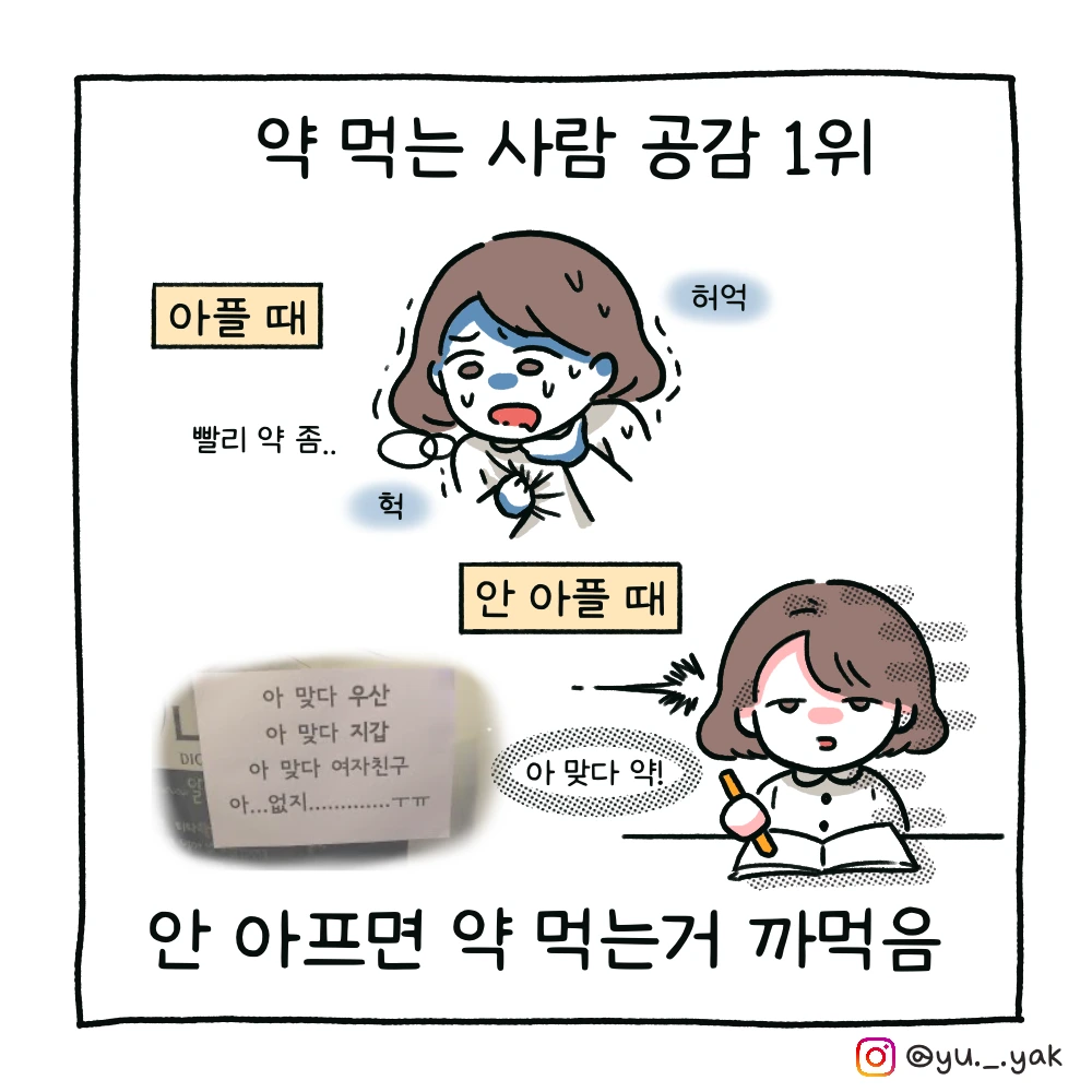 병원약사로 근무하고 있는 유약입니다. 병원약사 일상을 공유하려고 합니다. 인스타그램 [병약해도 괜찮아] 연재중 @yu._.yak
