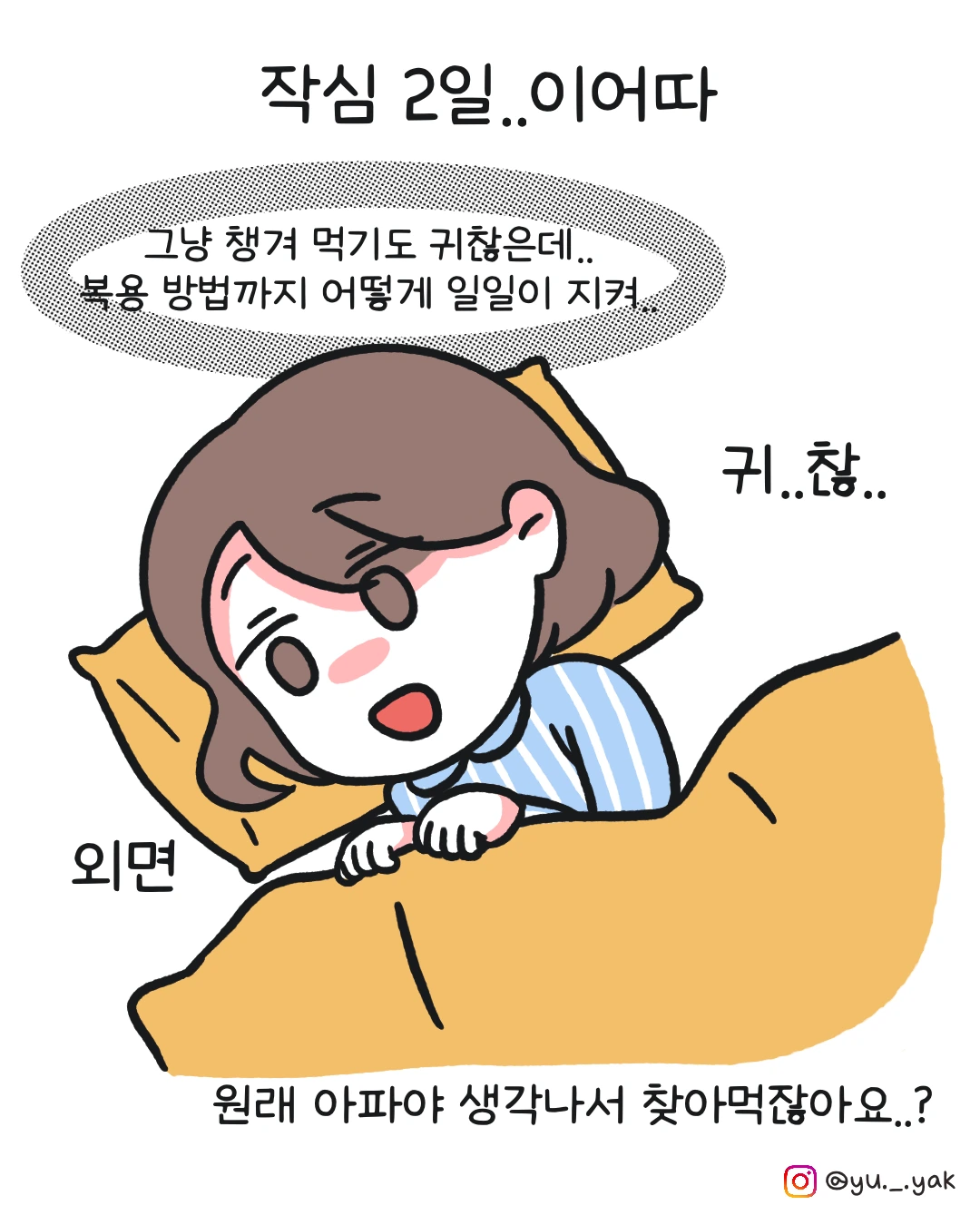 병원약사로 근무하고 있는 유약입니다. 병원약사 일상을 공유하려고 합니다. 인스타그램 [병약해도 괜찮아] 연재중 @yu._.yak