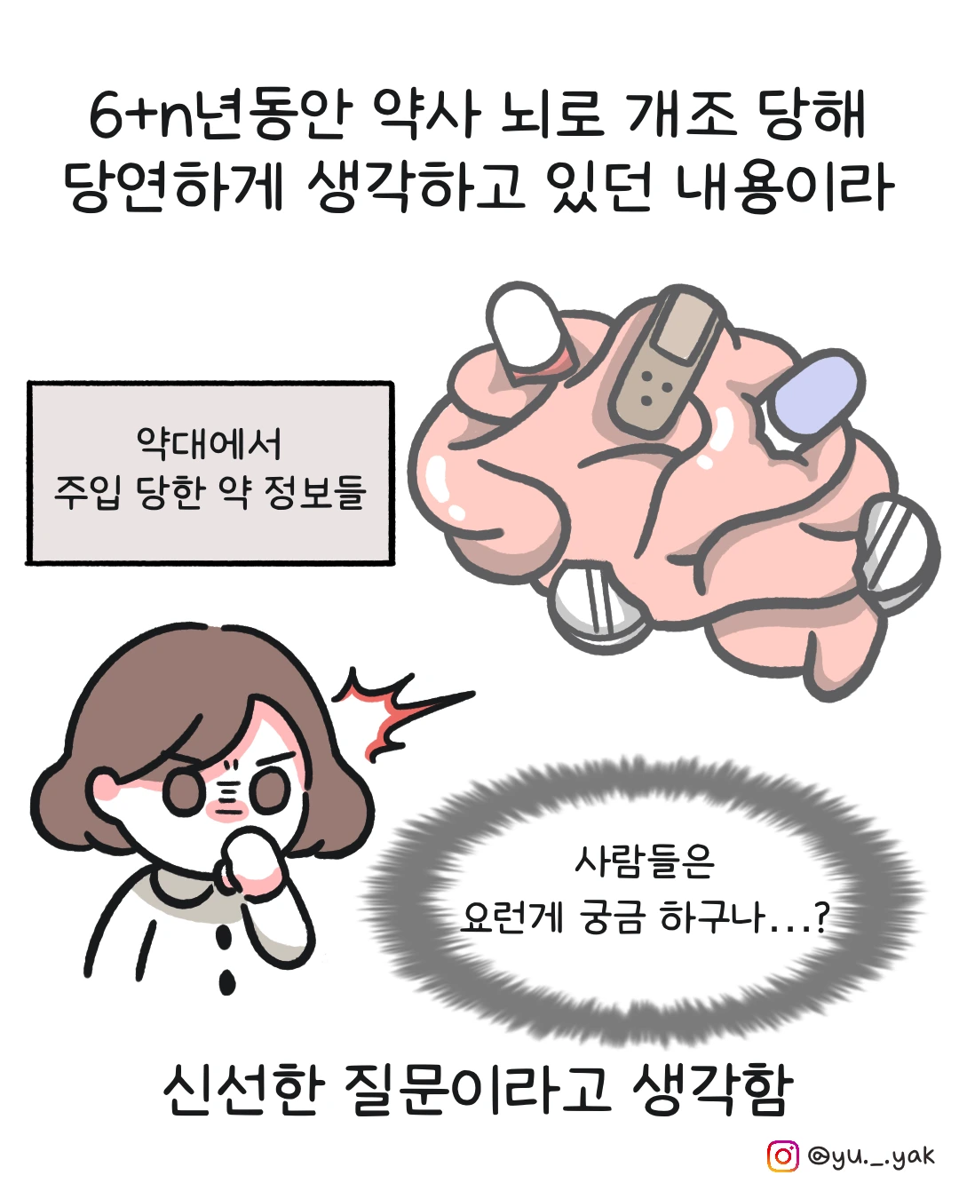 병원약사로 근무하고 있는 유약입니다. 병원약사 일상을 공유하려고 합니다. 인스타그램 [병약해도 괜찮아] 연재중 @yu._.yak