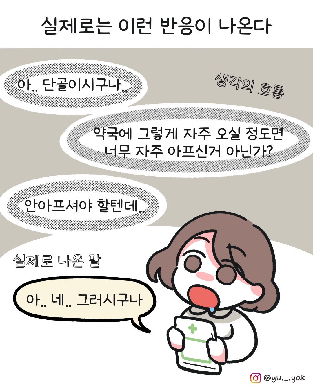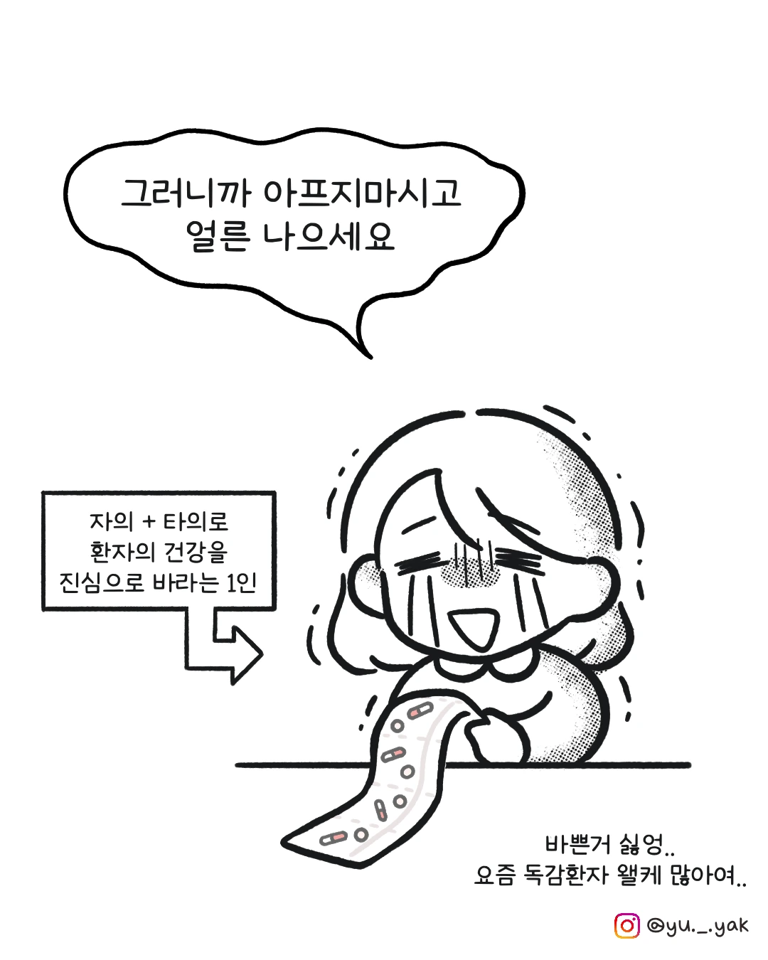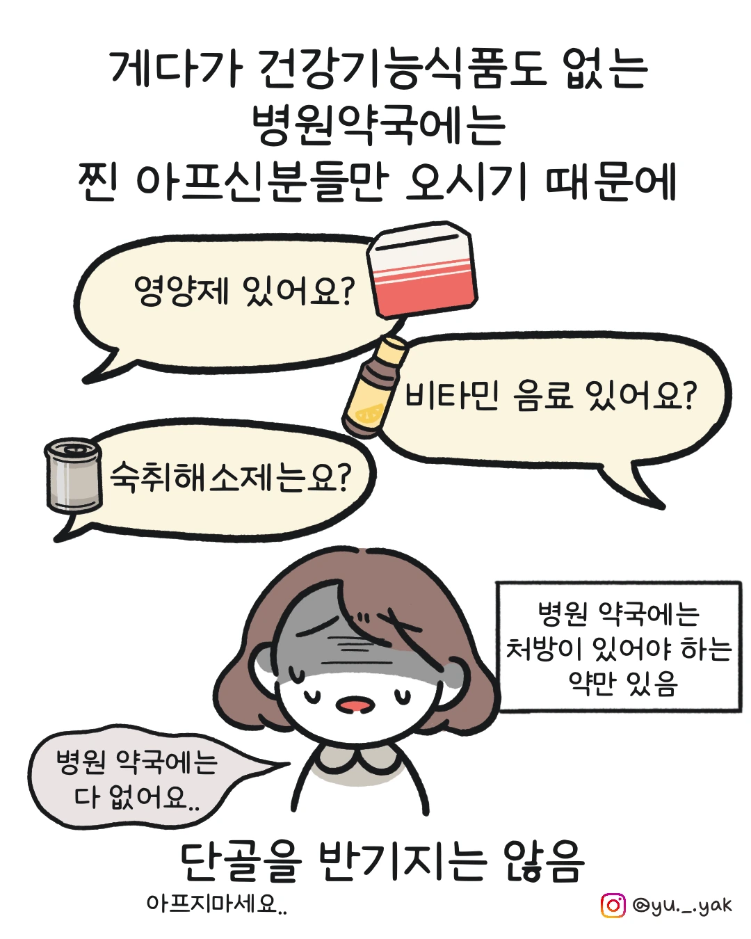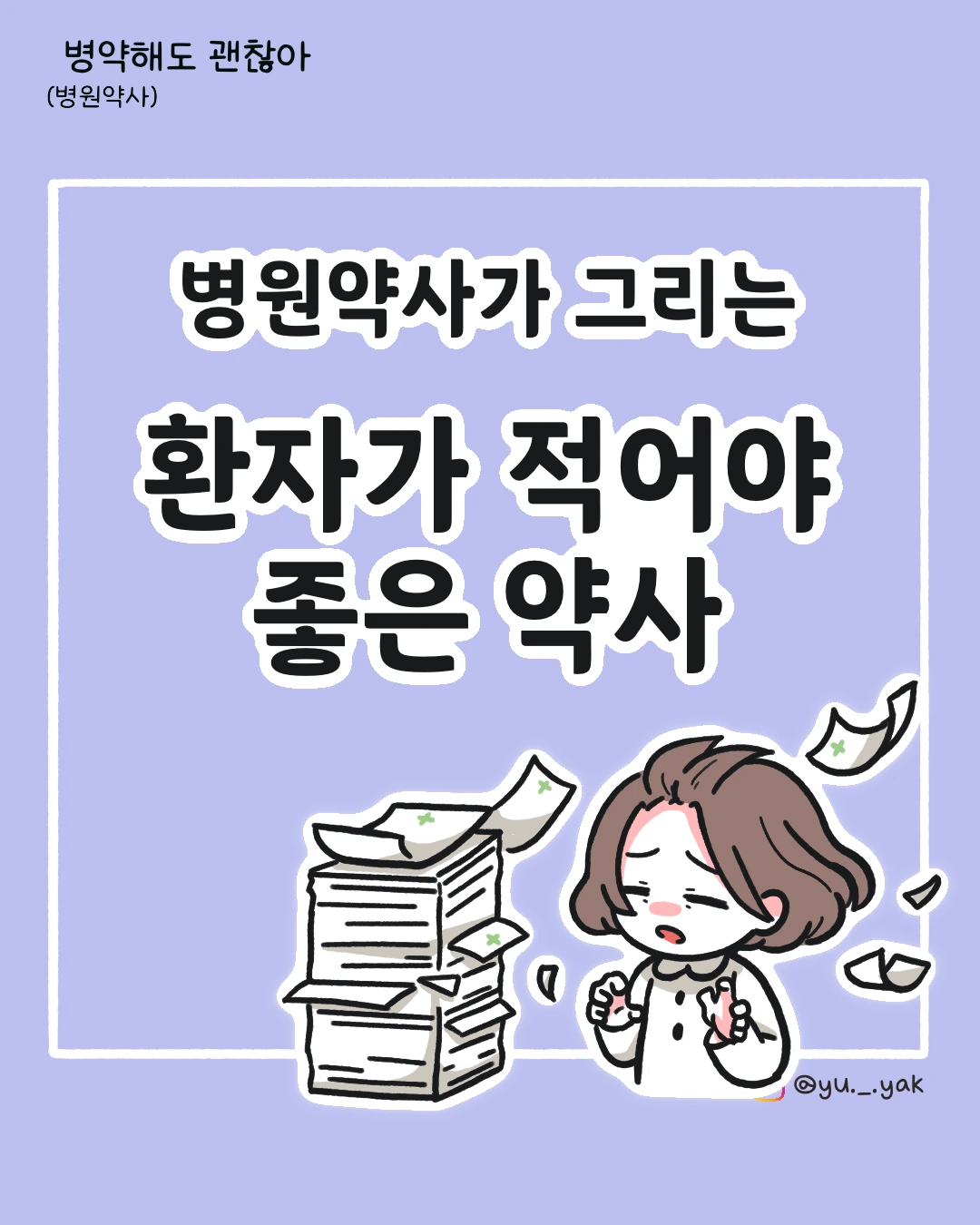 병원약사로 근무하고 있는 유약입니다. 병원약사 일상을 공유하려고 합니다. 인스타그램 [병약해도 괜찮아] 연재중 @yu._.yak