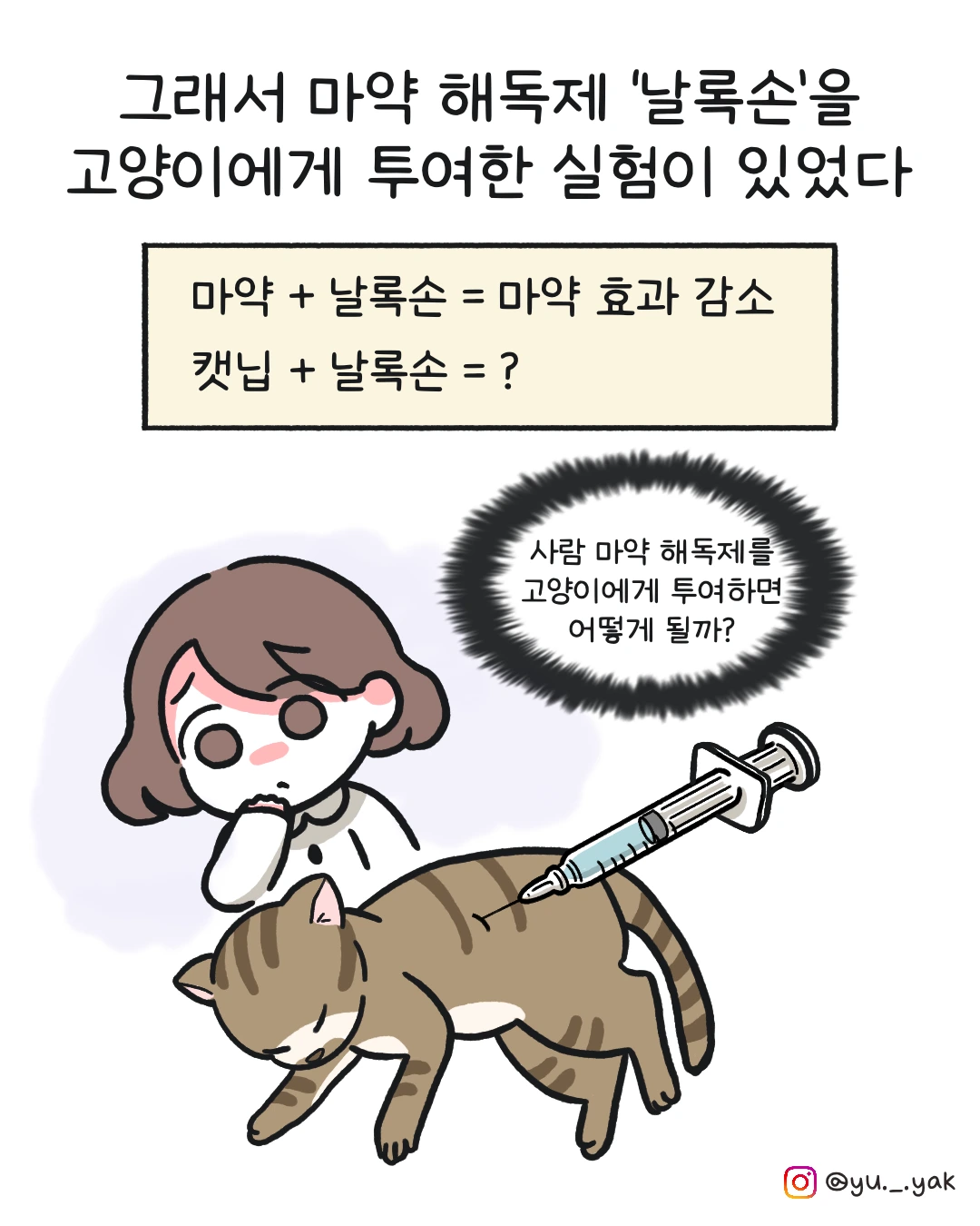 마약해독제를 투여한 고양이는 캣닙에 어떻게 반응할까?