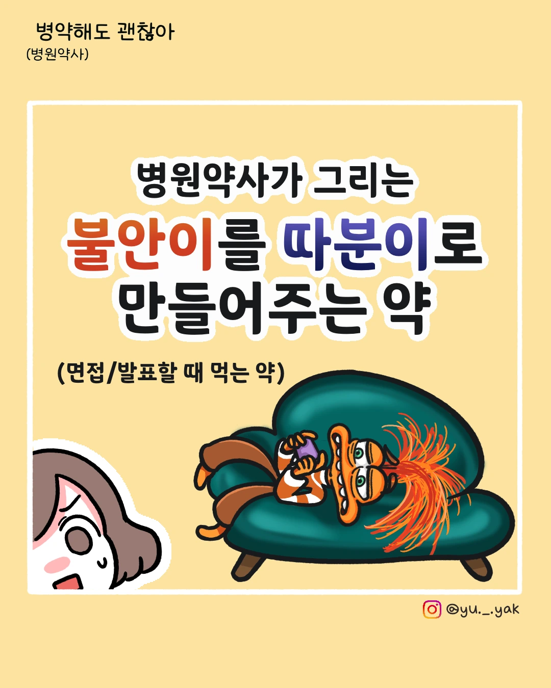 병원약사로 근무하고 있는 유약입니다. 병원약사 일상을 공유하려고 합니다. 인스타그램 [병약해도 괜찮아] 연재중 @yu._.yak