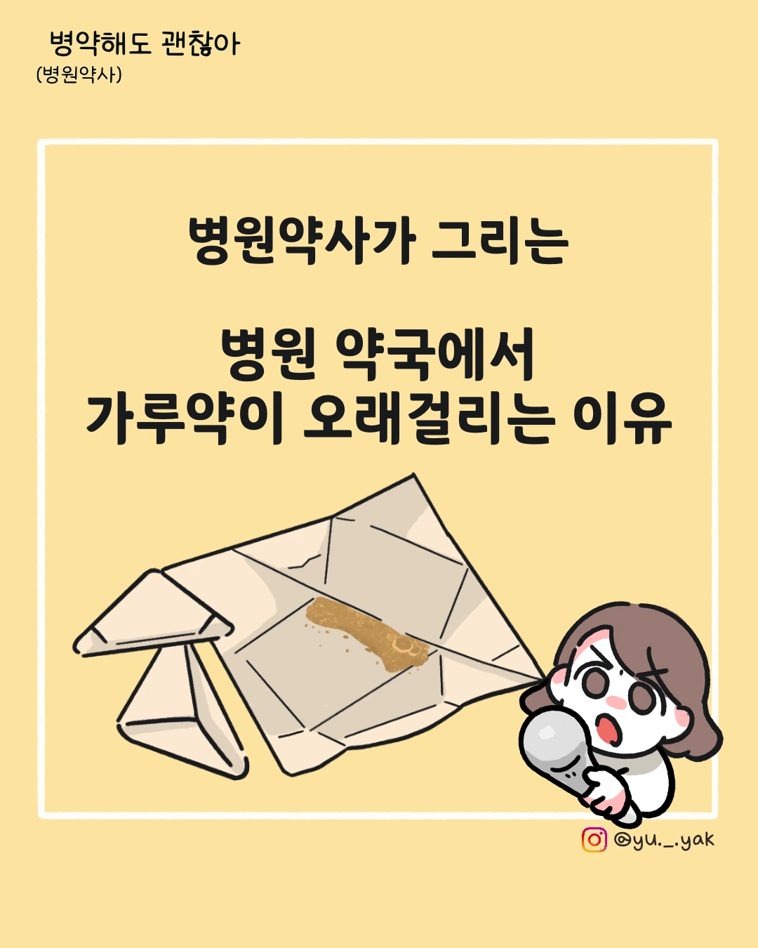 병원약사로 근무하고 있는 유약입니다. 병원약사 일상을 공유하려고 합니다. 인스타그램 [병약해도 괜찮아] 연재중 @yu._.yak