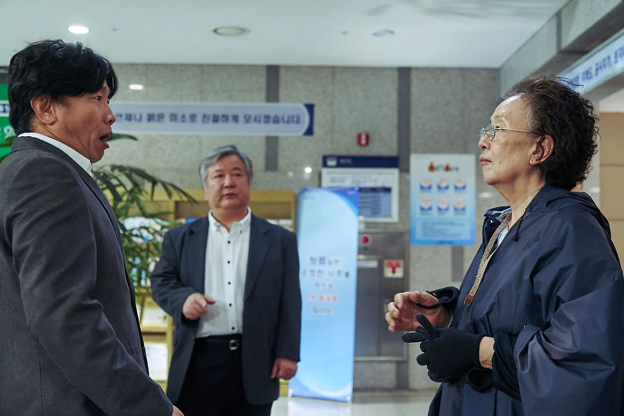 감독의 계몽 의식을 조금 더 밀고 나가는 소지의 발언 혹은 그가 말하고자 하는 방법론에 대한 발언을 첨언한다. '영어'는 어찌 되었던 국제적 이해관계를 윤활시키는 공통어라 할 수 있다. 같은 '국어'를 하는 이들끼리도 이렇게 소통이 되지 않는데 - 영화 속에는 진주댁(염혜란)과 가로수 그늘 아래 '서면' 등의 유머 코드의 불일치, 아영(정연주)과 박민재의 대화 불일치, 구청 계단의 화살표 방향의 오류 등 수많은 소통의 부재가 등장한다 - 한 세기가 다 되어가는 할머니에게 영어로 자신의 의사를 피력하라는 것은 마치 드니 빌뇌브 감독의 <컨택트> 속 루이스(에이미 애덤스)가 외계인과 소통하는 것만큼 힘든 일일 것이다.