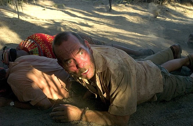 이 흐름을 찾기 위해 영화 속에서 주객을 전도 시키는 두 개의 시퀀스를 말해야 한다. 처음 저스틴이 '객'이었던 순간. 병원을 가기 위해 40km를 걷는다는 아프리카인들을 차에 태우자는 테사(레이첼 와이즈). 하지만 저스틴에게는 현재의 테사의 상태가 더 중요하다. 타인보다는 어쨌든 자신의 가족의 안위가 우선이기에 저스틴을 비난할 수는 없지만 소수의 사람을 돕는다고 이 문제는 해결되지 않는다고 말하는, 이런 일은 기관에게 맡겨야 한다는 저스틴의 말은 사실 무심함과 무책임함에 대한 자가 증명이다.