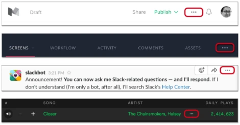가운뎃점 말줄임표(⋯)를 메뉴로 사용하는 앱들이 증가하고 있다. 기본적으로 이는 “이봐, 여기서 더 많은 것들을 할 수 있다고.”와 같은 의미를 내포하고 있다.