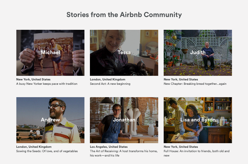 Airbnb 의 핵심 비지니스 모델은 신뢰이다. 그렇기 때문에 Airbnb는 신뢰성을 주기 위해 깨끗하고 정갈한 디자인을 추구함과 동시에, 사용자들의 실제 이야기들을 적극 활용하고 있다. 추천 글이라는 형태로 낯선 이들이 서로 연결되어 생성되는 새로운 이야기들을 말이다.